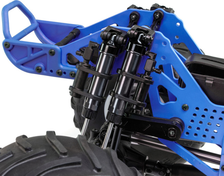Az amerikai monster truck RC modellje, a Losi LMT, új 2.0 verzióban, amely nemcsak a rajongókat, hanem a kezdő RC vezetőket is lenyűgözi, köszönhetően a DRIVE (Dynamic Response Intelligent Vehicle Envelope) elektronikus segédrendszernek - amely lehetővé teszi a könnyű vezetést hátsó és első kerekeken (wheelie, stoppie), sőt, akár két keréken oldalra is. A Drive rendszer három előre beállított üzemmódot kínál (Freestyle, Wheelie és Unlimited), amelyeket kényelmesen lehet váltani a távirányítón. Tapasztalja meg a saját bőrén az arénás vezetést, minden trükköt azonnal a kibontás után, előzetes tapasztalat nélkül. A modell megőrzi az előző generáció összes előnyét, mint például a nagy teljesítményű kefementes motort, a 4WD meghajtást, a licencelt karosszériát, a Spektrum elektronikát, és számos további fejlesztést ad hozzá.