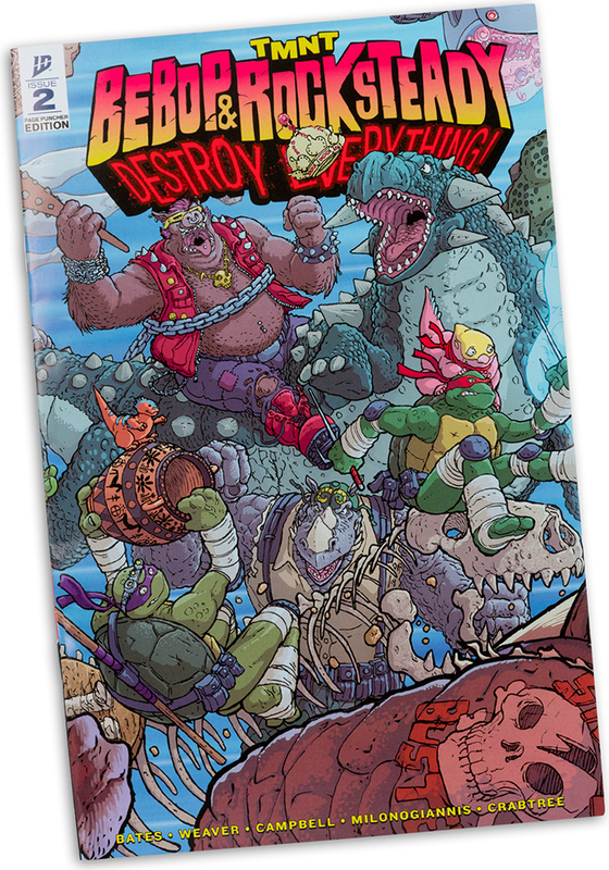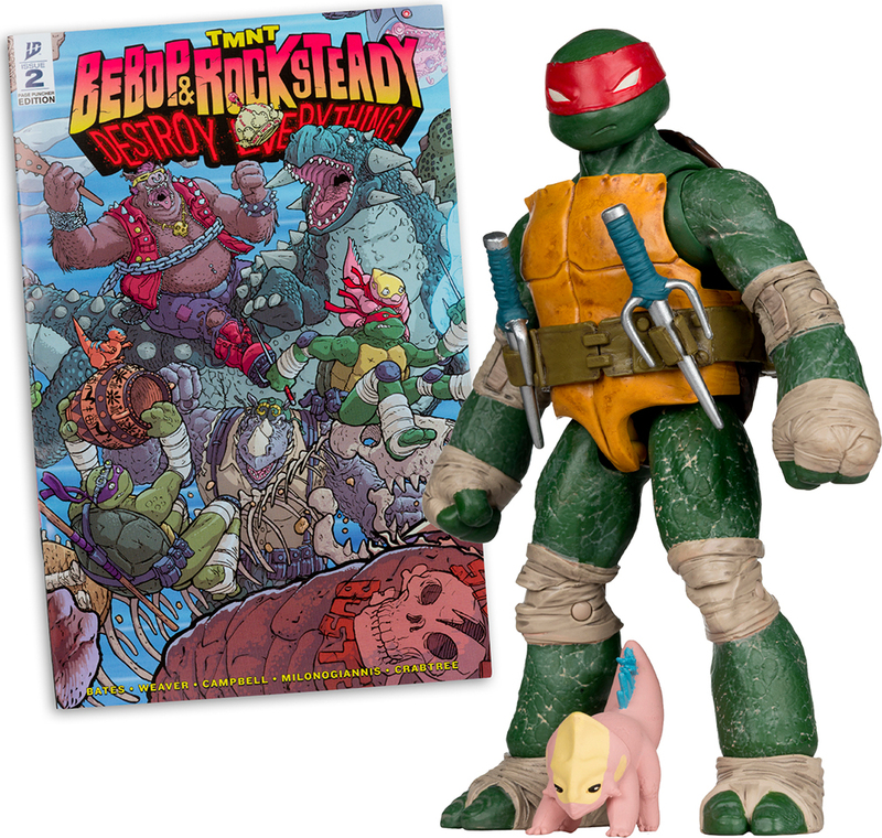 McFarlane Toys x Teenage Mutant Ninja Turtles Page Punchers – figura (Bebop & Rocksteady Hit the Road) egy rendkívül mozgatható akciófigura 5 hüvelyk méretarányban, amely az IDW Publishing Teenage Mutant Ninja Turtles képregények művészi stílusa alapján készült.