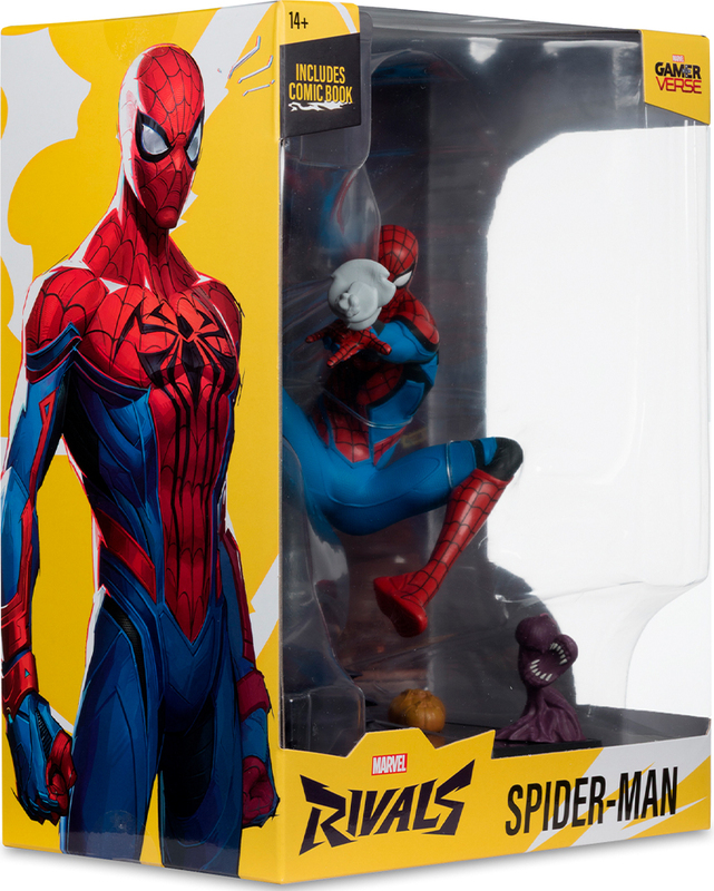 McFarlane Toys Marvel Rivals – Spider-Man figura (1:6 méretarány) megörökíti Peter Parkert, a barátságos szomszédos Pókembert, amint a karakteres pókhálófonalaival lendületbe jön, és meglepi ellenfeleit alattomos ragadós pókhálós lövésekkel és váratlan támadásokkal felülről. A figura a Marvel Rivals játék ihlette.