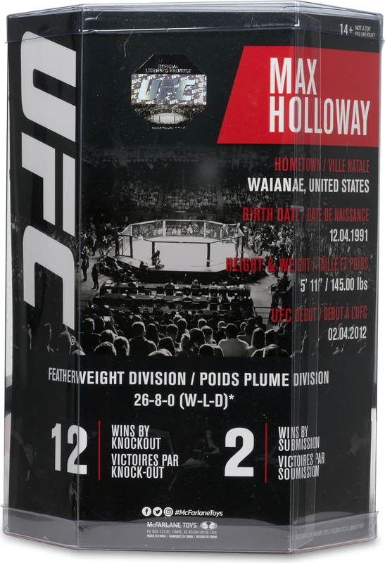 McFarlane Toys UFC SportsPicks Sorozat #9 – Max Holloway figura megörökíti a tapasztalt vegyes harcost, akit „Blessed" néven ismernek, aki 2010-ben vált profivá és gyorsan a UFC csúcsára jutott.