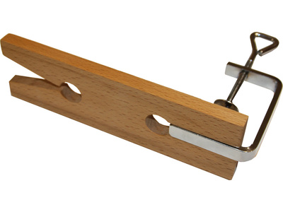 Modelcraft vágólap bilinccsel, támasztékként találja meg a munkadarab rögzítését rétegelt lemez fűrésszel, fűrészeléssel, fúrással stb. A betét 187x55x12 mm-es keményfa tömbből készült, "V" kivágással és horonnyal a bilincs számára. A blokkot szorítóval rögzítjük a munkaasztalhoz, max. Az asztal vastagsága 65 mm.