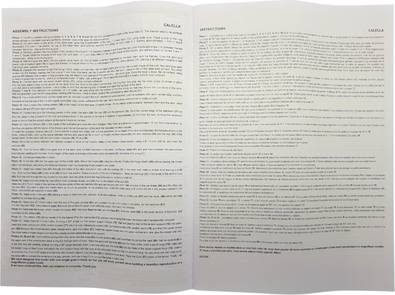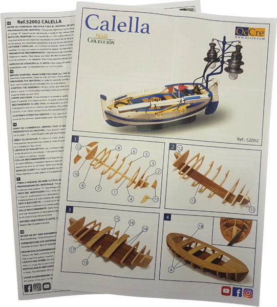 A OCCRE Calella 1:15 méretarányú nem úszó hajómodell építő készlete. A hagyományos mediterrán halászhajó makettje, kezdő modellezők számára. Az építés főként fából történik, a lapos alkatrészek lézerrel pontosan vágottak. A hajótest klasszikus bordás. A deszkázás dupla. A modell érdekes részletekkel van felszerelve, mint például lámpák vagy a hajó felszerelése. A készlet előnye a csúcsminőségű csomagolás, amely jól védett alkatrészeket tartalmaz, lépésről lépésre képes útmutatót és rajz készletet.