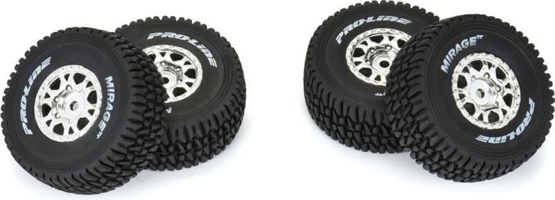 Teljes Pro-Line kerekek 1:18 méretarányú RC autókhoz, Mojave GROM. Méret: ?68x28mm. A felni ezüst színű. A gumik 1.2" Mirage TT, közepes keménységű keverék. A tengely 12mm hatszögletű. Open Cell betét.