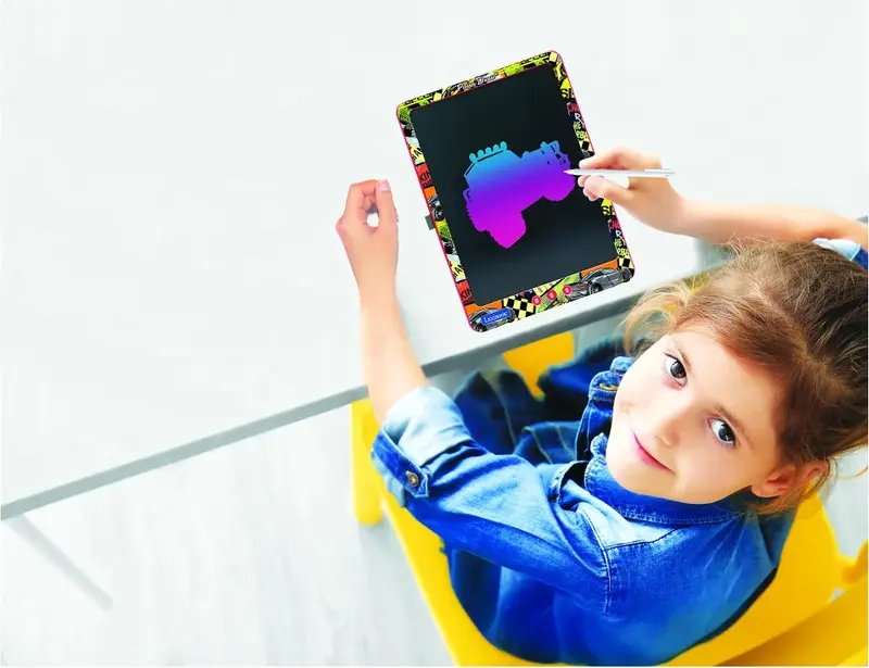 Támogassa gyermeke kreativitását a több színű, elektronikus tintával rendelkező rajztáblával! Az ultrakönnyű, vékony táblagép tartós anyagból készült, ideális rajzolásra, írásra és tanulásra a mellékelt stylus segítségével, bárhol – az autóban, étteremben vagy barátoknál. Az érzékeny LCD kijelző lehetővé teszi a gyerekek számára, hogy egyszerűen módosítsák a vonalak vastagságát. A táblagép törlés gombbal van felszerelve, és az akkumulátor akár 10 000 órás üzemidőt kínál.