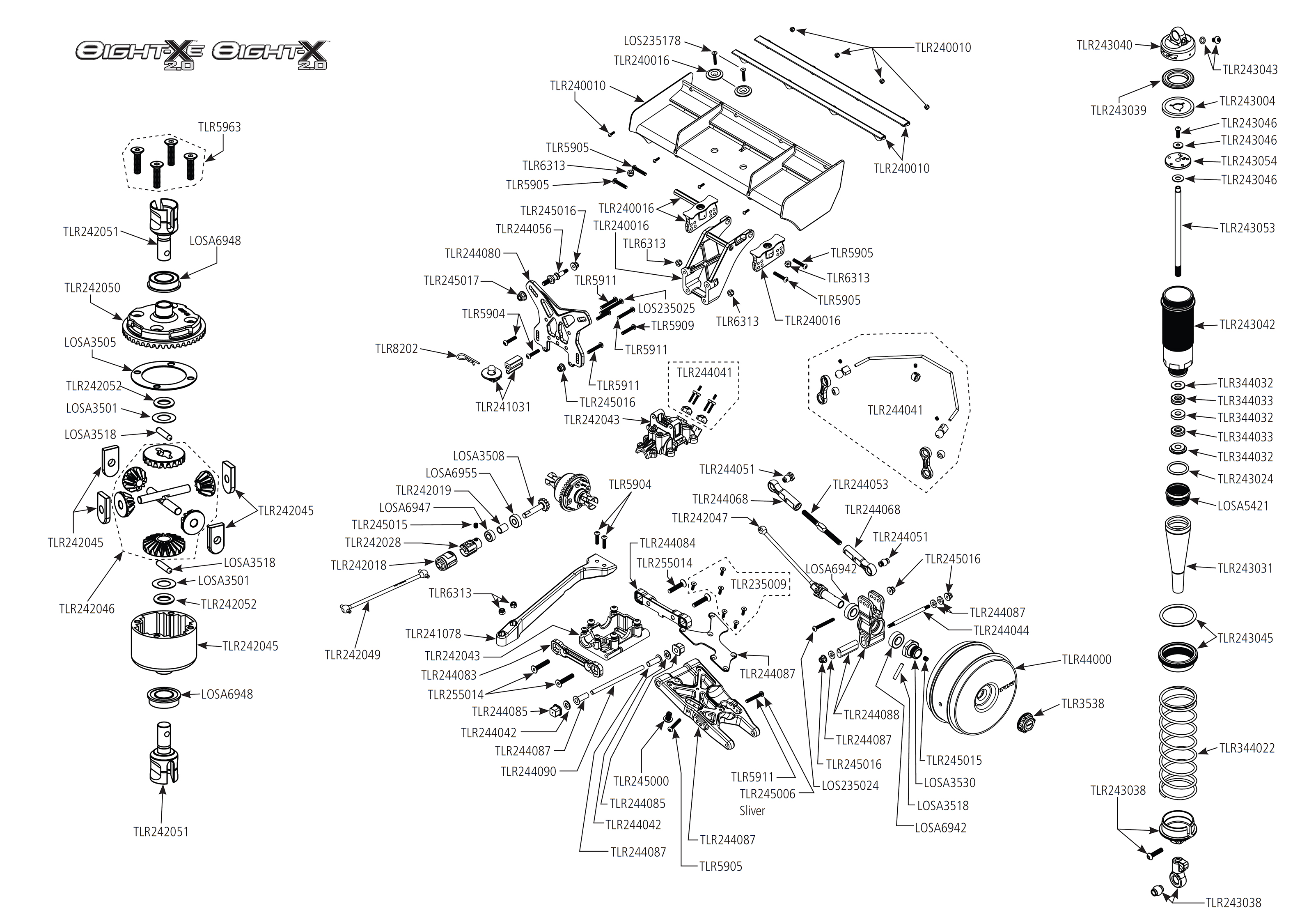 A termékhez TLR 8ight-X/E 2.0 Combo Nitro/Electric Buggy 1:8 4WD Race Kit
