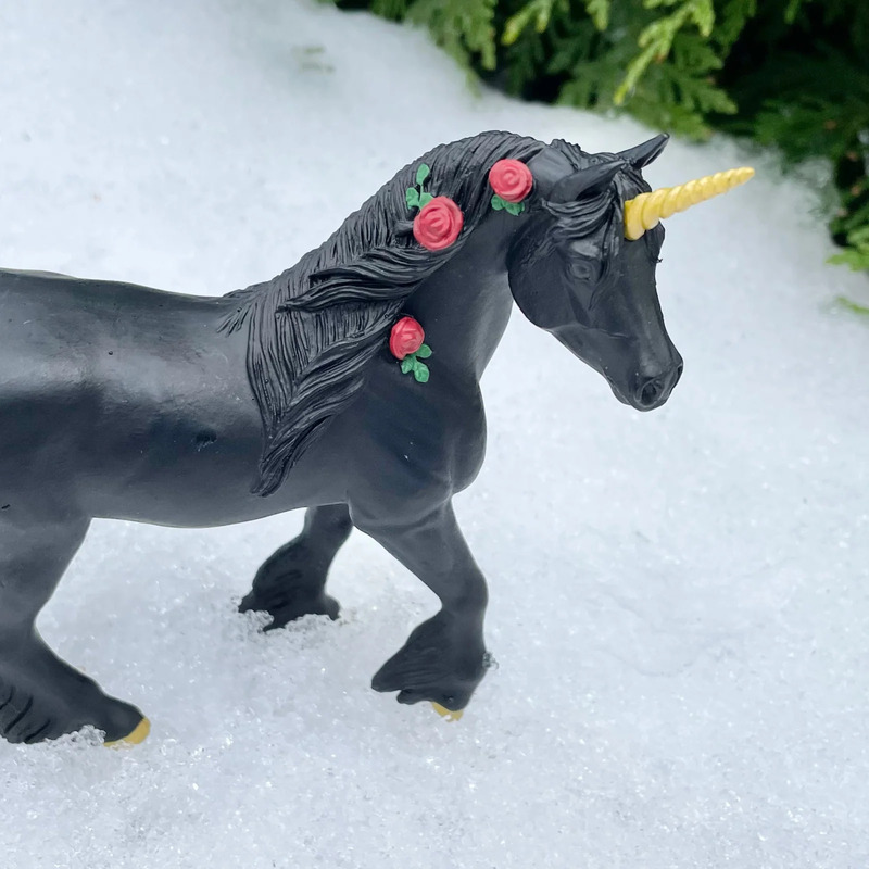 Fantázia egyszarvú arany szarvval és virágokkal a sörényében. A varázslat és a bűbáj szimbóluma, játékra, gyűjtésre és a fantázia fejlesztésére alkalmas.