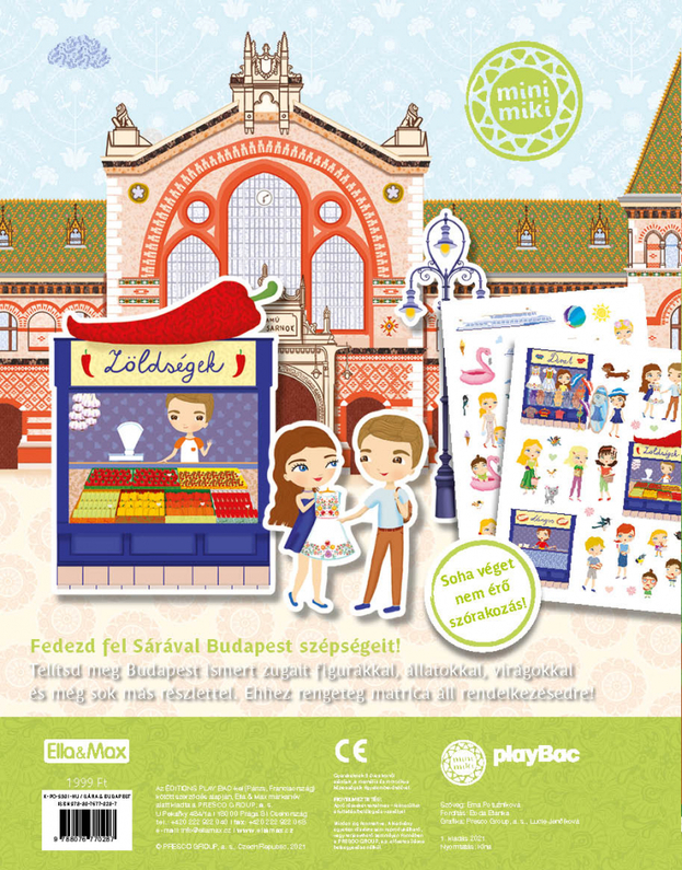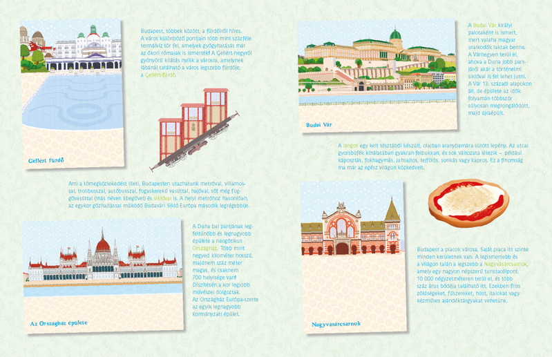 A gyerekek a saját elképzeléseik alapján sokféle újrafelhasználható matricával egészíthetik ki az ismert helyszíneket. A könyv rengeteg érdekességet tartalmaz nemcsak a helyi műemlékekről és a város kedvelt zugairól, de a magyar kultúráról is.