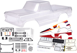 Traxxas karosszéria Ford F-150 1979 tiszta. A karosszéria rögzítőfuratokkal van kivágva, festést és kikészítést igényel. A csomag tartalmaz egy klip nélküli rögzítőrendszert, sárvédő szoknyákat, hűtőrácsot, oldalsó tükröket, kilincseket, ablaktörlőket, rögzítési tartozékokat, ablakmaszkokat és matricákat.