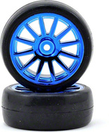 Traxxas kerék, 12 küllős kék tárcsa, slick gumik (2)