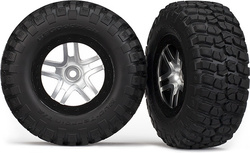 Komplett hátsó kerekek 2WD, első és hátsó 4WD RC Traxx autókhoz. Split Spoke Silver Disc a BFGoodrich KM2 sárvidéki gumiabroncsokkal és beszúrással.