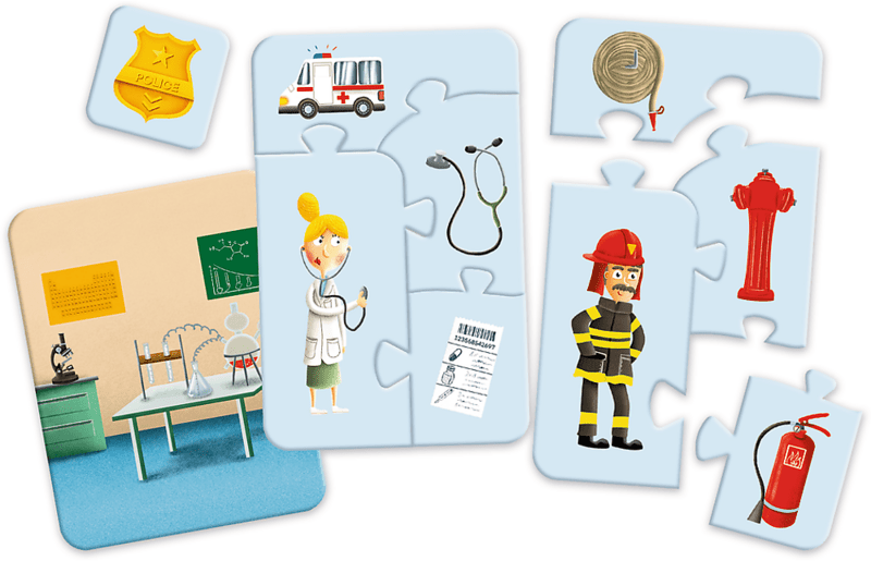 A Foglalkozások egy kirakós játék kisgyermekek számára, hogy megtanulják, mit jelent különböző szakmákban dolgozni, és milyen eszközök szükségesek az egyes szakmákhoz.A játék során a gyerekek különféle szakmákban gazdagítják szókincsüket, gyakorolják az egyes témákról szóló beszédet és fejlesztik a kognitív kíváncsiságot.