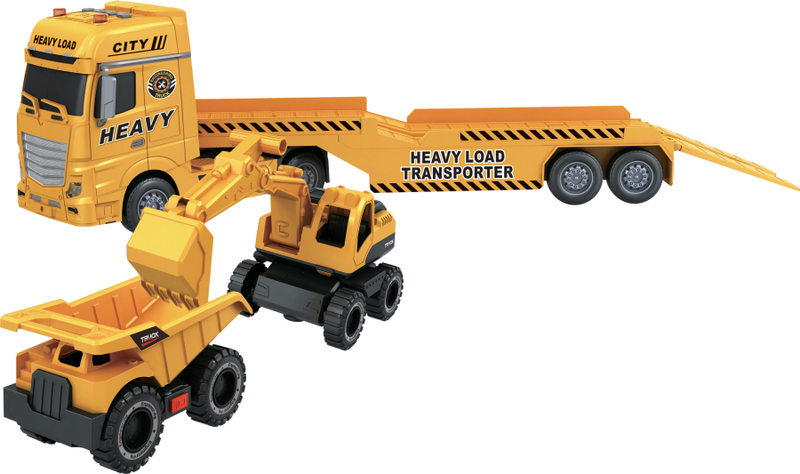 Készítse el saját szórakoztató és kalandos építkezési jelenetét a CITY SERVICE CAR - 1:12 traktor kotrógéppel és teherautóval segítségével. Ez a tökéletesen megtervezett műanyag játék teherautó mindennel fel van szerelve, amire a kis építőnek szüksége van kreativitásának és építőkészségének fejlesztéséhez. Az 53 cm-es hosszával a CITY SERVICE CAR nyergesvontató részletgazdag kialakításával és 1:12-es méretarányával lep meg, ami valósághű élményt nyújt.