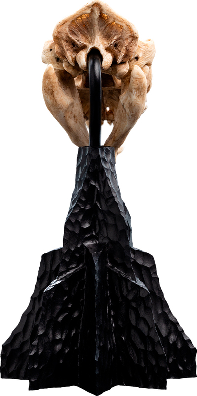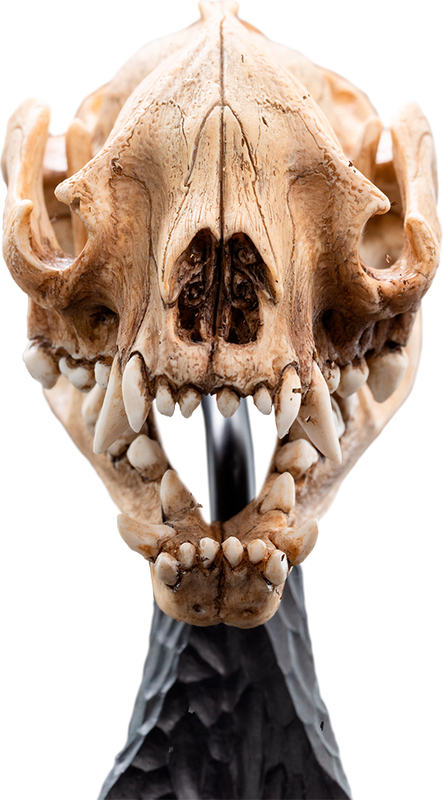 Előre néző szemüreg utal a kiváló térbeli látásra – a csúcsragadozó kulcsfontosságú tulajdonsága. A koponya fizikailag senior szobrász Weta Workshop és Középfölde veterán Jamie Beswarick által faragott.
