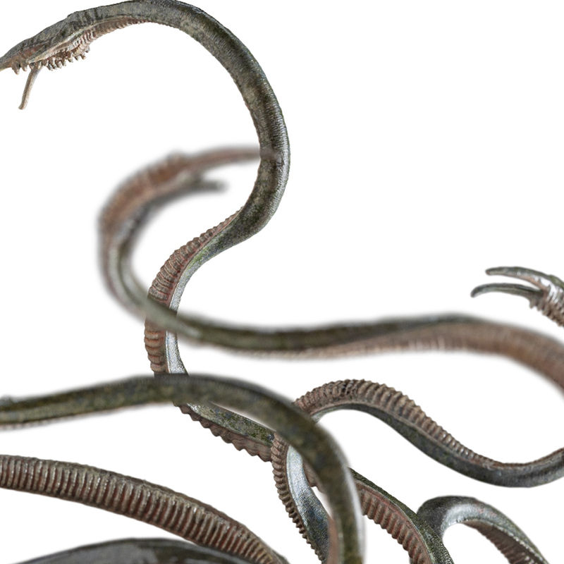 Mutassa be, ahogy kinő a polcáról, vagy a talapzatában található beépített fióknak köszönhetően rögzítse a falra, és felfedje szörnyű lényegét teljes szépségében.