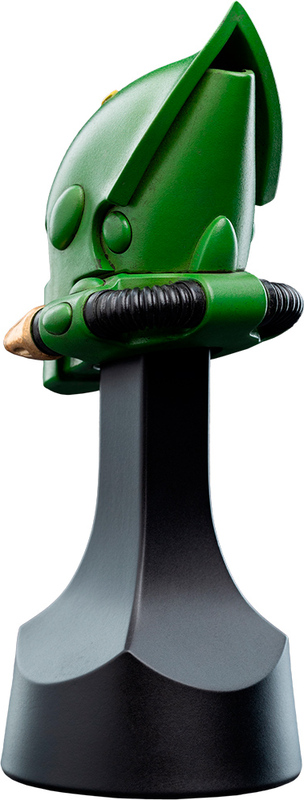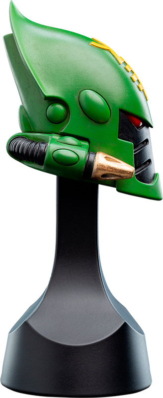 Kézműveseink megragadták a Csapás Skorpiók baljós eleganciáját ebben a rendkívül részletes sisak replikában. A chitinhez hasonló dizájn, zöld árnyalatok és bonyolult rúna jelképek figyelemre méltó pontossággal vannak reprodukálva.