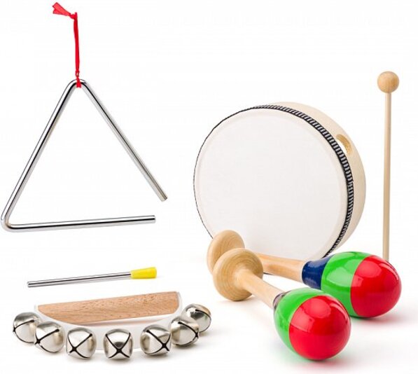 Woody Musical készlet (harangok, tambura/dob, háromszög, 2 maracas)